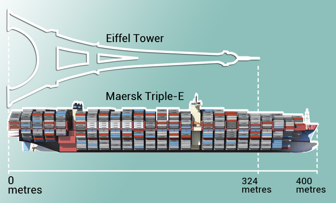The Triple-E’s scale is mind-boggling: it weighs 60,000 tonnes and is 400 metres long – 76 metres longer than the Eiffel Tower lying down. Launched in June, Maersk Line’s new vessel is the biggest ship in the world and, paradoxically, one of the greenest.