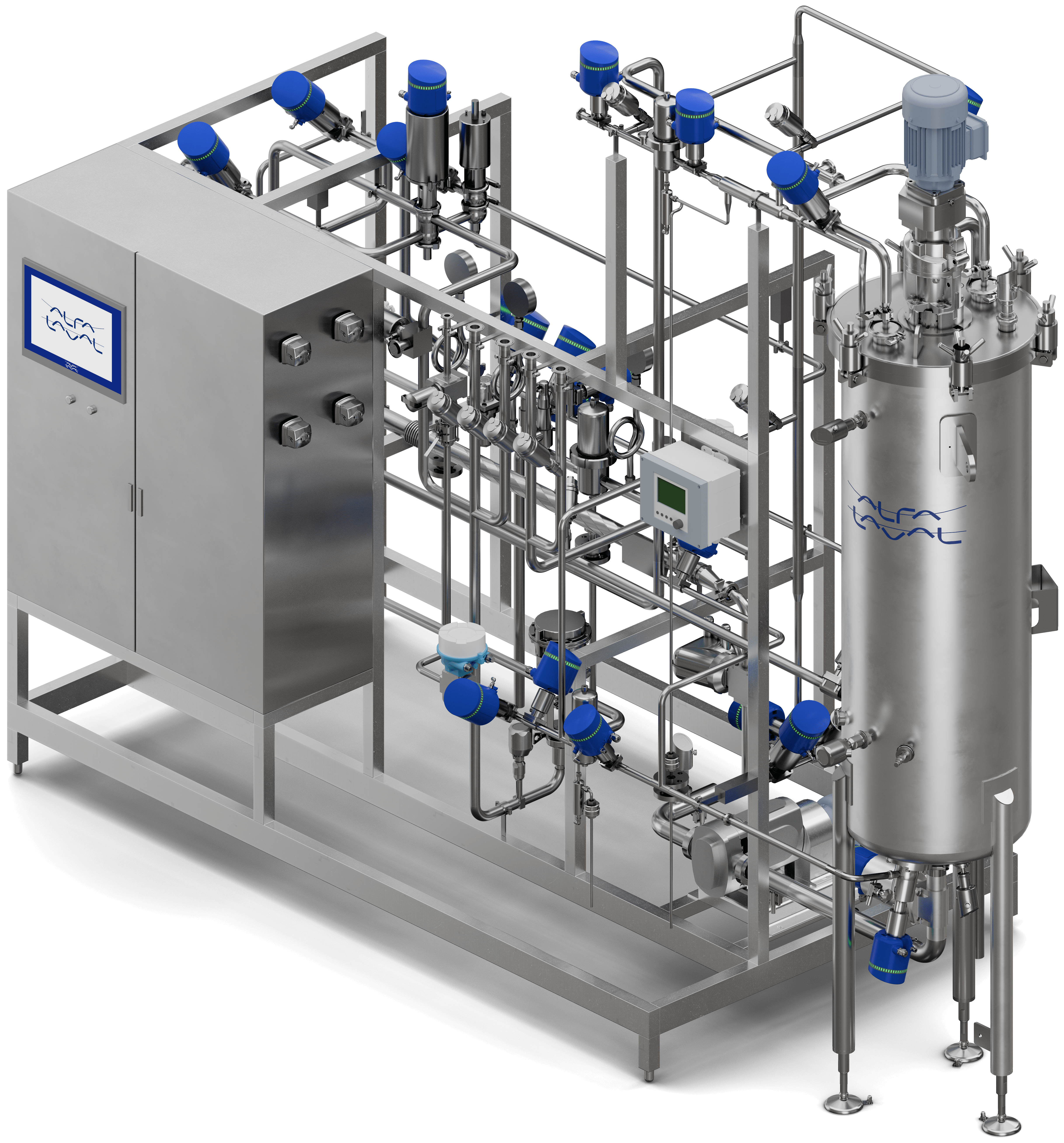 When scaling up production, the cooling capacity of conventional jacketed or coil-cooled fermenters often becomes a limiting factor. The Alfa Laval Fermentation System removes metabolic heat through an external heat-exchange loop, eliminating the need for energy-inefficient jackets or internal coils. The result is higher cooling efficiency, better process control, consistent product quality, and easier cleaning.